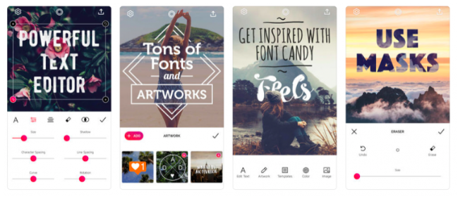 This IOS app functions as more than just a tool to add in a couple of text and pictures. Font Candy offers an extensive selection of hand-picked fonts, lets you invert your text and your background, upload a separate photo to fill your text, add shadows to your text or blend it into your background.