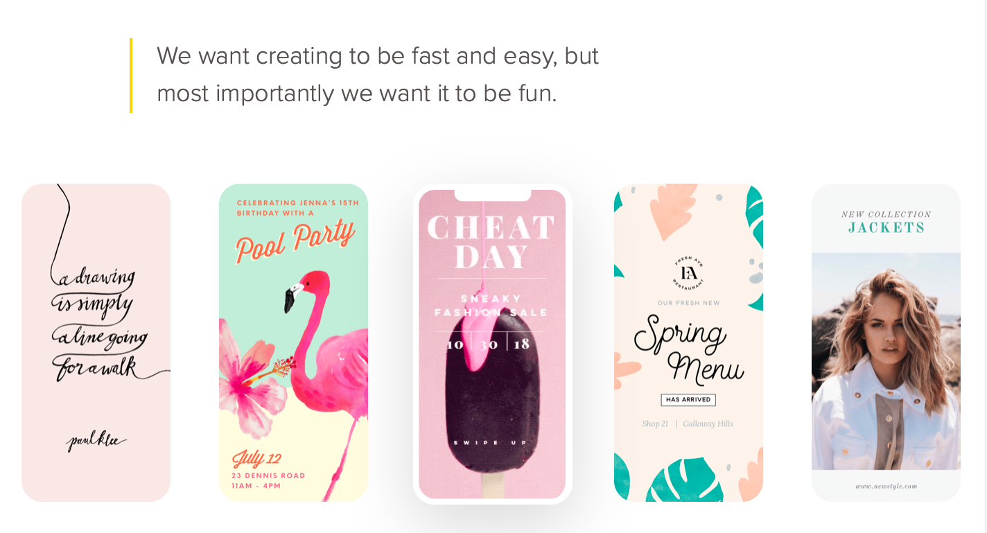 Adobe Spark Post is a creative design app that offers you amazing animated effects to add in your photos. Despite the Adobe name, you don't need any graphic design experience to master this app. Spark Post will suggest you a wide range of professionally-designed templates to choose from, which you can make your own with a few simple steps.